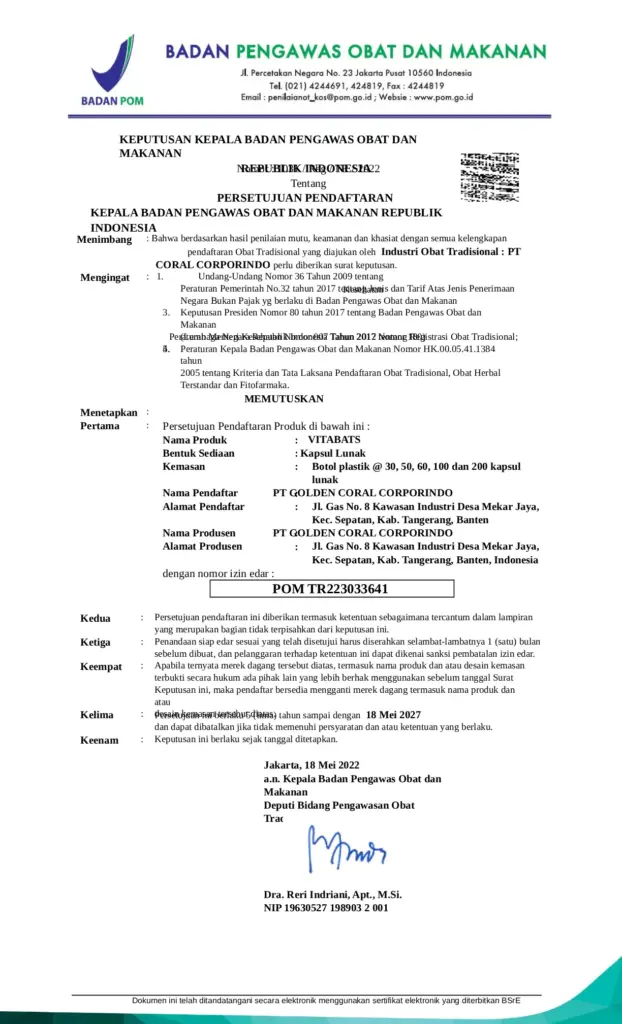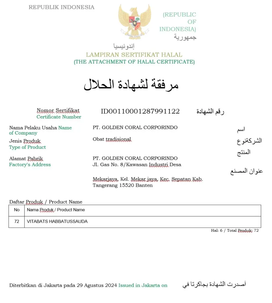 Ya. Vitabats sudah tersrtifikasi Halal MUI dan menggunakan gelatin halal dari sapi, bukan babi, bukan gelatin non-halal. Kami percaya menjaga kesehatan juga bagian dari menjaga kehalalan dan ketenangan hati.
